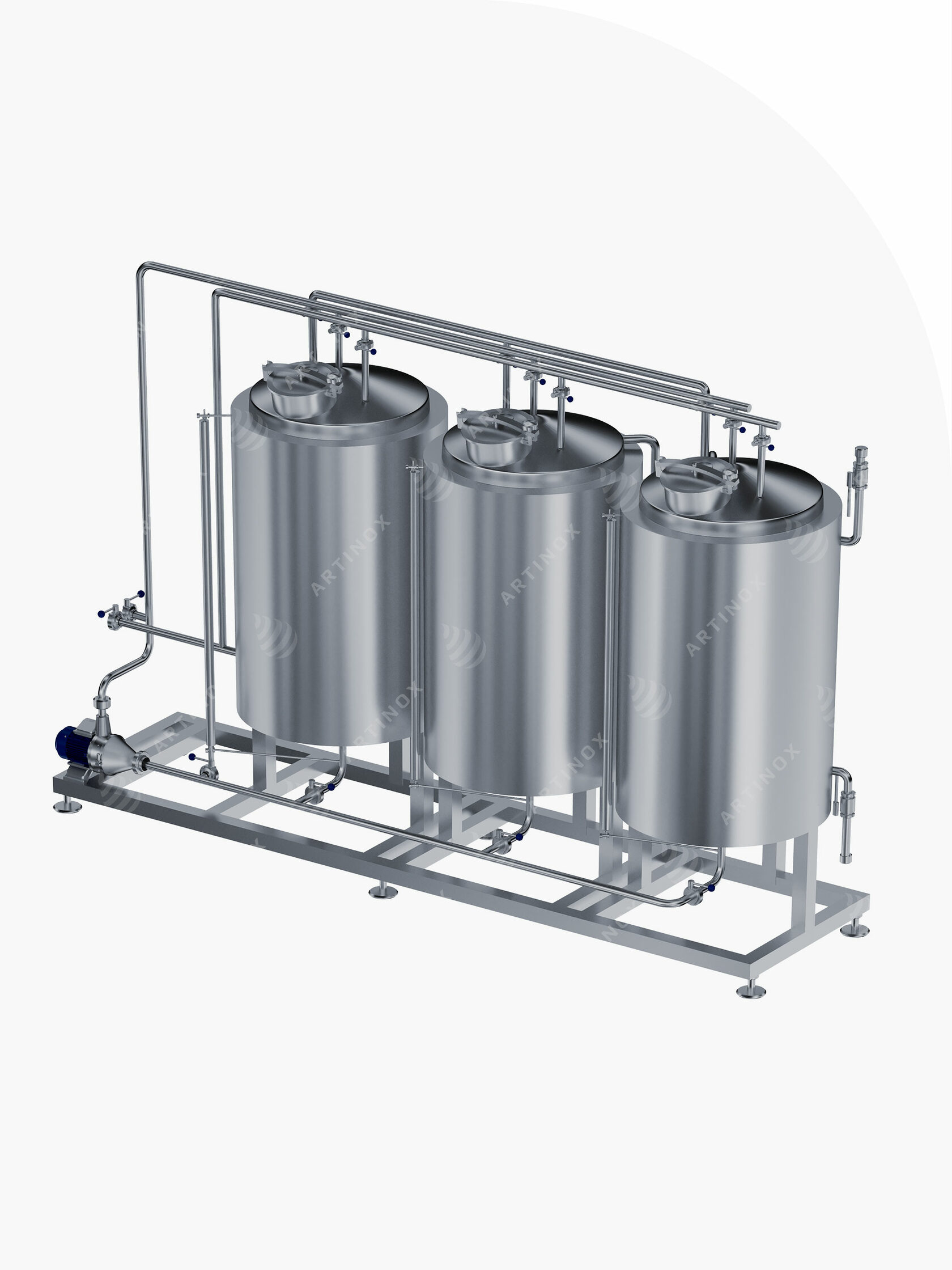 Stații de spălare CIP (clean-in-place) - instalații din oțel inoxidabil pentru curățarea echipamentelor de bere cu soluții dezinfectante.